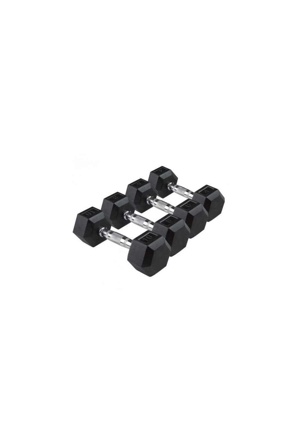 Jednoruční činky s gumovým povrchem, šestihranný tvar, kovová rukojeť, balení po dvou kusech