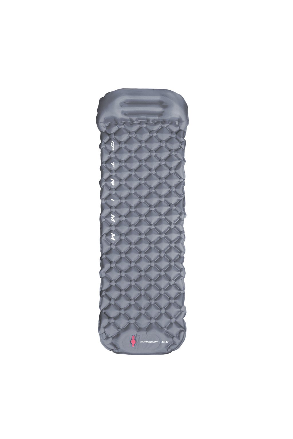 Nafukovací matrace Trimm STEPPER 5.5 s 56 centimetrů šířky po celé délce karimatky a 190 cm zajistí plnohodnotný komfort. To vše navíc doplněno o integrovaný polštář a integovanou nafukovací pumpou. Nylonová tkanina s Ripstop úpravou o tloušťce vlákna 40D zaručuje vysokou odolnost. Tepelní odpor 1,3