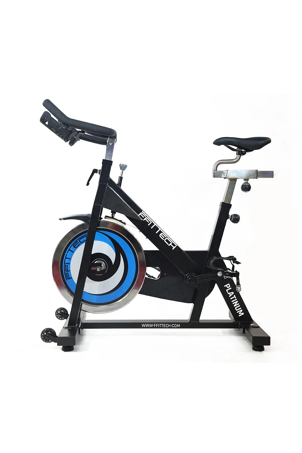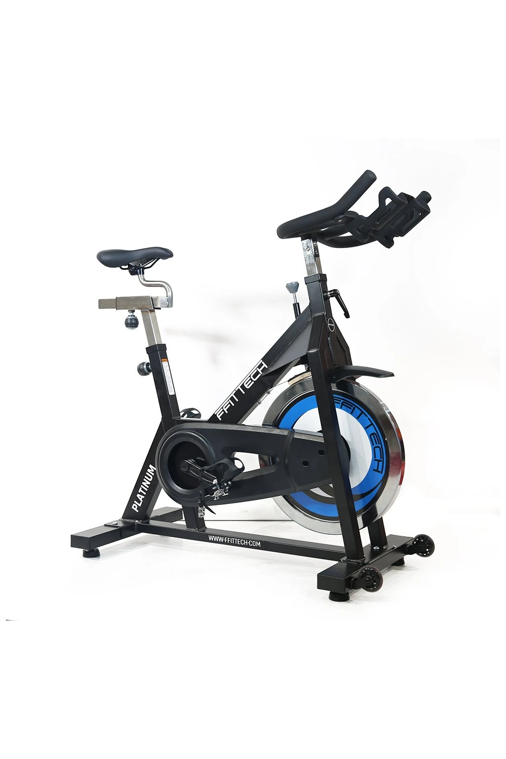 FFITTECH Spin Bike Platinum, robustní indoor cycling kolo, 20 kg setrvačník, třecí brzda, řetězový pohon