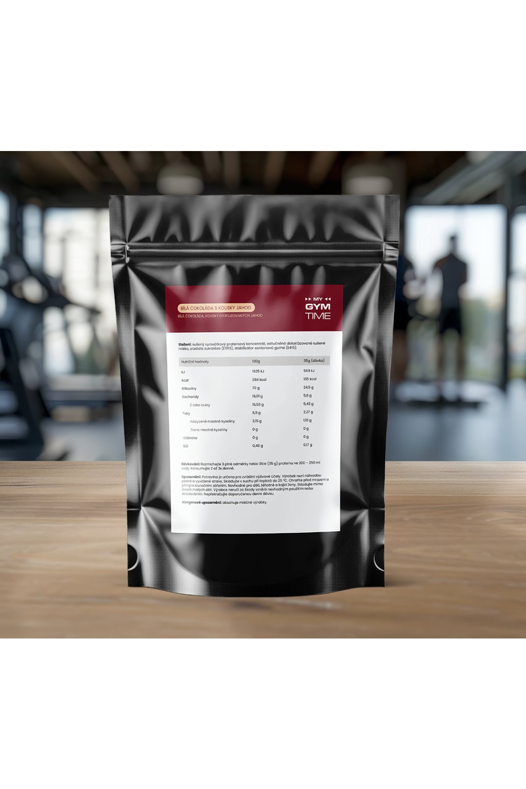 Syrovátkový protein My Gym Time bílá čokoláda s kousky lyofilizovaných jahod je ideálním doplňkem pro všechny sportovce i aktivní jedince, kteří chtějí efektivně podpořit růst a regeneraci svalové hmoty. Obsahuje vysoký podíl bílkovin (až 70 %) a minimální množství tuků a sacharidů, díky čemuž je vhodný jak do fáze nabírání svalů, tak i při redukčních dietách.